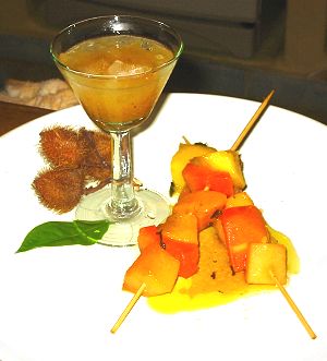 - Thread the fruit onto skewers to create an attractive palette of colours;